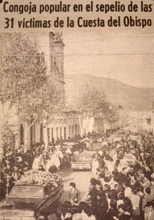 l 8 de  setiembre de 1974 ocurrió uno de los siniestros más trágicos y traumáticos que  sufrieran los salteños en su historia, un colectivo que transportaba peregrinos  de la Iglesia San Alfonso de vuelta a Salta desde Cachi, se desbarrancó en la  Cuesta del Obispo, casi llegando al pie a unos 150 km. de la Capital salteña.